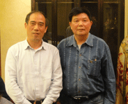 時(shí)任河南省人民政府省長郭庚茂先生(左)與臺(tái)州商會(huì)支部書記、《百花散》傳人梅安富先生合影